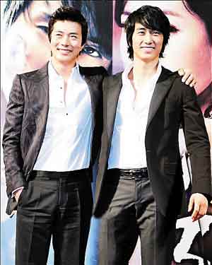 17日晚,《宿命》首映禮在首爾舉行,兩大主演宋承憲、權(quán)相宇一同出席了儀式,互摟著膊頭做宣傳,非常親昵。不過兩人在戲中卻演繹由好兄弟變仇人的故事,權(quán)相佑扮演背叛兄弟的大反派,影片將在20日在韓國上映。因?yàn)闄?quán)相宇和宋承憲在亞洲的人氣,首映式還吸引了約100名來自中國、日本等亞洲其他國家的fans。