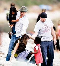 全家法國(guó)海邊度假 大肚朱莉腳滑不慎摔倒(圖)