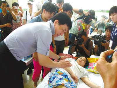 前天成龍抵達(dá)成都后再次捐款,成都發(fā)布會前集體默哀一分鐘,之后成龍要與人保一起合作支援災(zāi)區(qū)校舍的重建工作。隨后他趕往了重災(zāi)區(qū)德陽,到現(xiàn)場去援助災(zāi)區(qū)群眾,還前往德陽人民醫(yī)院看望受災(zāi)兒童。