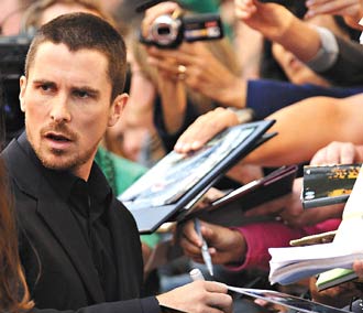 中新網(wǎng)7月25日電 《蝙蝠俠:黑暗騎士》男主角克里斯汀·貝爾(Christian Bale)上周日因涉嫌襲擊母親Janny和二姐Sharon鬧上警局,后接受完警方訊問后獲釋。前日,貝爾出席西班牙首映禮,電影公司特別安排15輛房車接載他跟妻子Sandra Blazic,以及同片演員進(jìn)場,場面極具氣派。貝爾更花上一個半小時為紅地毯上數(shù)以百計影迷簽名,又細(xì)心詢問影迷名字,明顯打親民牌,藉此挽救人氣。