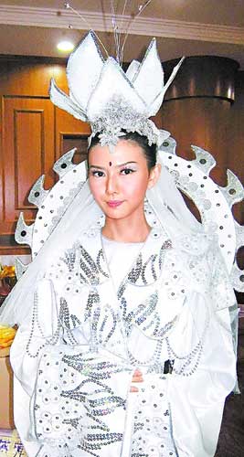 孫燕姿今年初在新加坡演出電影《12蓮花》,片中扮觀世音的造型。