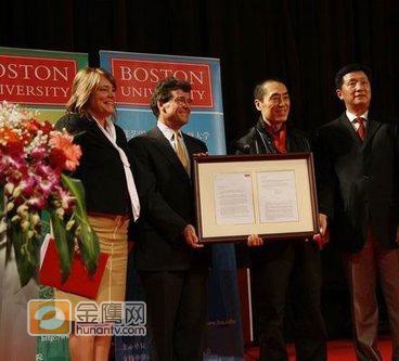 據悉,獲得美國知名大學榮譽博士的中國藝術家屈指可數。歷史上,僅有京劇大師梅蘭芳在1930年獲美國波摩那學院獲榮譽博士學位。明年5月,波士頓大學將在美國舉行隆重的學位頒授典禮,屆時與張藝謀導演一同獲此殊榮的還有世界各地的杰出的人士。