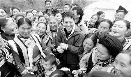 當天,李連杰還走訪了茂縣境內(nèi)的羌繡技藝培訓(xùn)基地,之后,他又繼續(xù)趕往綜渠鄉(xiāng)的羌繡幫扶點,探望那里的繡女朱召應(yīng)。朱召應(yīng)和丈夫在汶川大地震中雙雙受傷,她的脊柱受損不能站立,她的兒女又有殘疾,生活非常艱難,后來朱召應(yīng)加入羌族婦女就業(yè)幫扶計劃,每天埋頭做羌繡,生活有了很大改善。李連杰在她居住的帳篷里,不斷鼓勵這個坐在輪椅上的堅強女性,“你一定要繼續(xù)加油,總會慢慢好起來的。”離開茂縣之前,有人把剛剛收到的一條新聞短信拿給李連杰看,原來這是本報“華西手機報”發(fā)出的一條新聞,正是轉(zhuǎn)載昨日本報的報道《慈善大俠李連杰來到咱羌寨》,李連杰看了后很是高興,不過他說:“做慈善其實并不是我一個人的事,大家一起努力才能成功,有了我們是一家人的信念,一定能戰(zhàn)勝困難。”