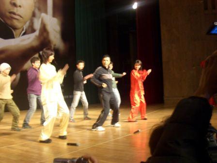 中新網(wǎng)11月28日電 11月27日,甄子丹來到北京大學(xué)百年講堂,為功夫賀歲片《葉問》宣傳造勢(shì)。當(dāng)天正趕上甄子丹的生日,北大百名學(xué)子為甄子丹合唱生日快樂歌,場(chǎng)面十分溫馨。甄子丹被學(xué)生們的熱情所感動(dòng),非常開心,更擺開架勢(shì)教北大學(xué)子打起了詠春拳。甄子丹稱,“《葉問》不只是功夫片,它在展示了詠春拳魅力的同時(shí),更發(fā)揚(yáng)了一種精神,我相信那是中國人的精神。”
