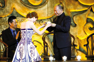由于影片中出現(xiàn)眾多“雷人”的臺(tái)詞,外界對(duì)于《赤壁(下)》的期待,已經(jīng)從一部歷史片演變成一部賀歲喜劇片。不知道是不是受此影響,前晚剛在北京看過《赤壁(下)》的主創(chuàng)們,在昨日的首映發(fā)布會(huì)上也都充滿了“喜劇感”。穿一襲青花修身裙子亮相的林志玲特意在現(xiàn)場(chǎng)大秀茶藝,為各位赤壁將領(lǐng)沏上功夫茶,并親手送到導(dǎo)演與諸位男演員手里,讓一眾男士感覺十分受用。而成龍大哥也前來捧場(chǎng),一上臺(tái)便給好友吳宇森一個(gè)熊抱,整個(gè)場(chǎng)面其樂融融。