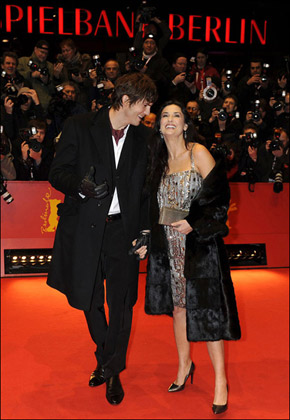 第59屆柏林電影節(jié)競賽單元的電影《喜悅之淚》(Happy Tears)于當?shù)貢r間2月11日舉行首映禮。黛米·摩爾身穿閃亮吊帶裙,外套奢華的黑色皮草大衣,雍容華貴嬌美迷人。而黛咪的小老公艾什頓·庫切(Ashton Kutcher)也帥氣亮相,為老婆賺人氣。