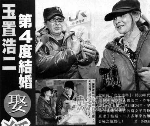 曾組成樂隊“安全地帶”,于上世紀80年代紅遍東南亞的玉置浩二,前天第四度做老襯,與糾纏24年、早前更曾出書爆他虐打自己的奇女子石原真理子結婚,二人多年來的離合極為戲劇化!