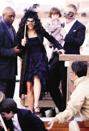 長達兩天的婚禮處處經(jīng)過精心布置。上周五,主人家按照傳統(tǒng),在威尼斯古跡海關大樓舉行了一場晚宴彩排以及假面舞會。海耶克、皮諾特帶著他們19個月大的女兒瓦倫蒂娜以及皮諾特與前妻的兒子,乘坐“水上巴士”抵達會場。無論是婚禮主角海耶克和皮諾特,還是塞隆等來賓均手持面具遮臉。