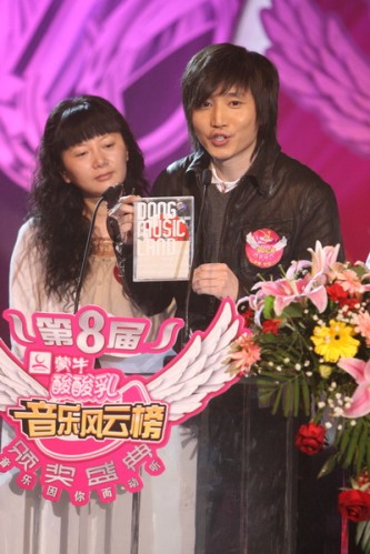 本屆頒獎盛典主題是“榮譽(yù)•夢想”,到場嘉賓紛紛秀出各自私藏的音樂紀(jì)念信物,這些都是他們堅(jiān)持不懈實(shí)現(xiàn)音樂夢想的最好見證。作為東樂公司老板的張亞東帶來了自己成立公司后制作的旗下新人首張合輯《東樂園》。張亞東將這張專輯始終捧在手中如同至寶,宣布這是他的“東樂大家庭”精心準(zhǔn)備的首次獻(xiàn)禮,代表了每一個(gè)參與者對音樂的夢想與堅(jiān)持,并自信表示《東樂園》中這些新人的表現(xiàn)不會讓愛音樂的人失望。