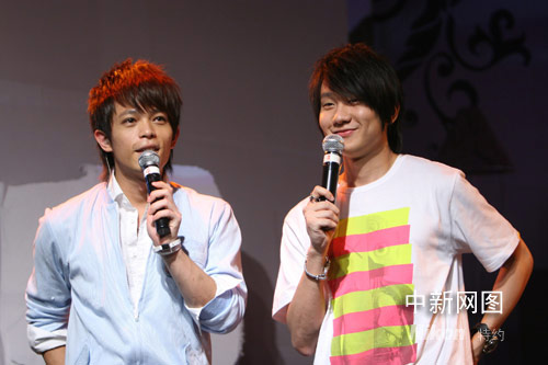 同門師兄林俊杰的亮相讓發(fā)布會現(xiàn)場掀起一陣熱潮,他和林宇中首次同臺合唱了兩人一起創(chuàng)作的歌曲《搶玫瑰》,讓現(xiàn)場歌迷大飽耳福。在演出中,兩人竟跳到臺下大派玫瑰花,引歌迷尖叫連連。這首歌其實是在講愛上“萬人迷”的“苦男”心理,林俊杰更趁機向師弟喊話,若愛上同一個人,“搞不好我會搶哦”。