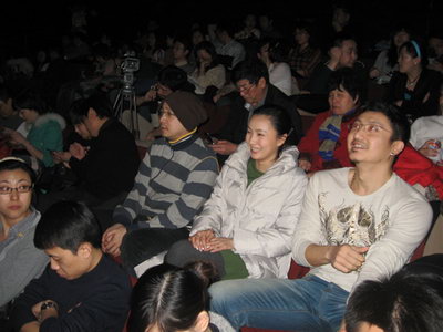 到了晚上18:30分左右,觀眾便陸續(xù)多了起來(lái),甚至還出現(xiàn)了排隊(duì)進(jìn)場(chǎng)的現(xiàn)象。在快開場(chǎng)前十分鐘,記者看到了小陶紅、徐崢、涂松巖等眾多明星走進(jìn)劇場(chǎng)來(lái)為高亮、賈立珠捧場(chǎng)。據(jù)悉,這是兩人的首次公開露面,所以回答記者的問(wèn)題格外小心翼翼,非常低調(diào),沒(méi)有太多寒喧,只是和工作人員簡(jiǎn)單地打個(gè)招呼便入座。