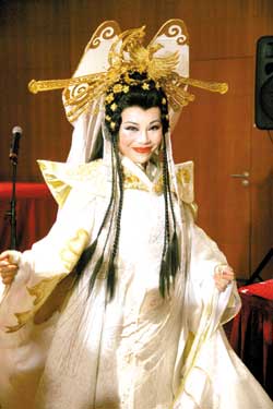 從前天開始,《圖蘭朵》開始進(jìn)入最后的排練階段。昨天,正在進(jìn)行彩排的劇組全體成員整齊與京城媒體見面。為了讓記者先睹為快,中方“圖蘭朵”、歌唱家孫秀葦著宮廷盛裝出席發(fā)布會。而10年前曾經(jīng)在“太廟版”《圖蘭朵》中扮演公主的意大利歌唱家卡索拉興奮地表示,她沒有想到10年后自己能再一次回到北京再次扮演這個角色,她說:“我曾經(jīng)無數(shù)次的演出過這部戲,但是這部戲的舞美和服裝實在太漂亮了,以至于我為之著迷。能夠再次扮演這個角色,我感到非常幸福!倍掌跄峁(jié)日基金會的負(fù)責(zé)人弗蘭克則表示,國家大劇院的這個版本是他見到的最美最感人的《圖蘭朵》。