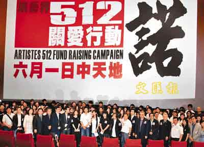 據(jù)香港文匯報報到,昨日近兩百余演藝界人士參加了記者會,短短十五分鐘談話便結(jié)束,會上先由活動召集人劉德華發(fā)言,他先為各界的支持致意,華仔又哽咽地說:“四川大地震發(fā)生,演藝界短短時間內(nèi)發(fā)起行動,大家勞心勞力,但這份熱情不是一時三刻,重建需時要三、五、七年,重建災民的生活,是我們的承諾,我特別多謝中聯(lián)辦及香港電影發(fā)展基金于行動中的協(xié)助,以及西九龍中天地六月一日借出場地舉行賑災大匯演,由于時間倉卒,不夠時間向有關政府部門申請,但深信活動會得到大家的響應及支持,寄望天佑四川,天佑中國!