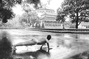 區(qū)志航:這就是我的過人之處。我的脫衣速度是很快的,平常模特的基本換衣時間是二十秒,而我在十秒之內(nèi)就能做到,連脫帶拍,八秒就可搞定。還有很多人認為我都是在凌晨的時候去拍的,其實也并不全是。凌晨能有這樣的光線?好像中山紀念堂那張,就是下午三點鐘拍的,那時的人很多,但還是沒讓人發(fā)覺。
