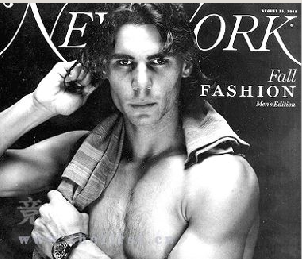 奧運(yùn)會(huì)網(wǎng)球男子單打新科冠軍納達(dá)爾成為時(shí)尚界的新寵。他赤裸上身大展肌肉,成為即將于本月25日出版的美國時(shí)尚雜志《紐約》雜志男女雙刊男子部分的封面人物,與他對(duì)應(yīng)的女子部分的封面人物則是前名?死锼沟佟げ剂挚死。