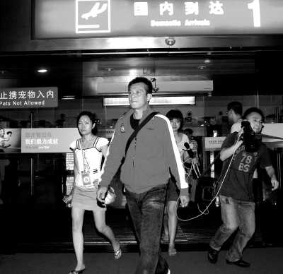 “靖哥哥”黃日華是從哈爾濱飛來重慶的,飛機(jī)比預(yù)計(jì)時(shí)間早到了10多分鐘,但人群漸漸散去都還未見他的蹤影。30分鐘之后,身穿紅色運(yùn)動服、牛仔褲,白色球鞋的黃日華出現(xiàn)在到達(dá)大廳,沒有戴帽子和墨鏡,小麥膚色的“靖哥哥”顯得很低調(diào)。有記者試圖上前訪問,酷酷的黃日華只顧向前走并不作答。期間,有不少路人認(rèn)出了他,都紛紛掏出手機(jī)猛拍,更有女生冒雨追趕希望能跟他合影。