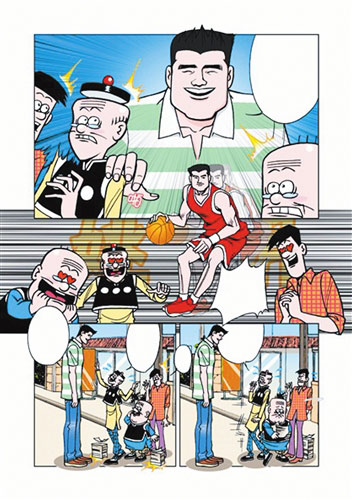 在《姚明與老夫子》中,除了姚明,他和老夫子形象的跨時(shí)空合作也是一大亮點(diǎn),為什么會(huì)把這兩個(gè)不同類型的人物進(jìn)行組合呢?馬桂林告訴記者,當(dāng)初創(chuàng)作團(tuán)隊(duì)為姚明設(shè)計(jì)漫畫時(shí),曾和姚明進(jìn)行了深入溝通。在溝通中,姚明提到了漫畫人物老夫子,原來姚明喜歡老夫子的漫畫形象。這讓創(chuàng)作團(tuán)隊(duì)有了靈感,希望把兩者形象結(jié)合在一起。而從目前的效果看,姚明與老夫子一老一少、一高大一瘦弱的形象組合十分具有幽默感。
