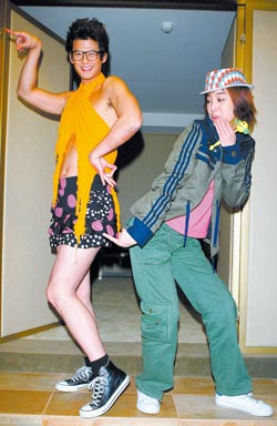 郭品超身高186公分,迷你裙穿在他身上,長度看起來又短一截,為了怕走光,他在迷你裙里套了一件泳褲。但調(diào)皮的他在現(xiàn)場當(dāng)起“暴露狂”,對(duì)著大家猛掀裙子,逼得大家一看到他過來就嚇得紛紛逃跑。本來還要他穿高跟鞋,可惜他腳太大,沒有Size。