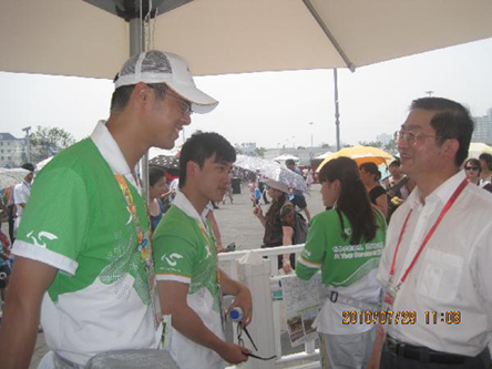 中新網(wǎng)8月3日電 據(jù)上海僑網(wǎng)消息,7月29日,上海市僑辦主任崔明華進(jìn)入世博園看望慰問華僑華人世博志愿者,對(duì)他們不遠(yuǎn)萬里回到祖籍國(guó)擔(dān)任上海世博會(huì)志愿者的熱情和辛勤付出表示感謝。