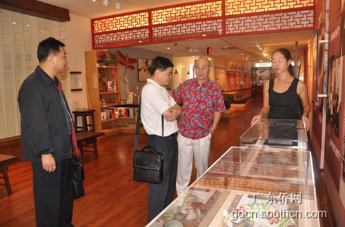 18日下午,訪問團先后拜訪了南加州傳統(tǒng)社團岡州會館、寧陽會館和寧僑公會,王明惠詳細介紹了廣東華僑博物館的建設(shè)發(fā)展情況和廣東華僑歷史陳列主題展,呼吁洛杉磯華僑華人積極向廣東華僑博物館捐贈文物文獻。此外,訪問團拜訪了美國洛杉磯華人歷史學(xué)會,與該會交流探討在廣東華僑博物館聯(lián)合舉辦洛杉磯華僑歷史展覽的議題。訪問團還參觀考察了華美博物館,聽取館長黃寶蓮介紹華僑歷史展覽、陳展設(shè)計、文物保護等方面的經(jīng)驗,就進一步加強兩館間的合作深入交流。晚上,中華會館和寧陽會館宴請訪問團一行,中華會館主席陳建邦、岡州會館董事長蔣石穩(wěn)、寧陽會館主席黃偉林等出席宴會。