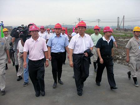 下午,林軍一行趕赴綿陽市北川新縣城援建北川中學建設工地考察。在施工現場,林軍一行察看了北川中學建筑設施的分布格局和工程進展情況。在聽取相關人員就工程建設情況的介紹后,林軍指出,北川中學是北川新縣城重建開工最早、投資最大的項目之一,作為援建北川中學的建設者、組織者和宣傳者,中國僑聯對關心和支持北川中學重建工作的捐贈人、建設者表示衷心感謝。他要求中國僑聯援建北川中學指揮部要與施工、設計、監(jiān)理、審計等單位一起,精心組織、周密部署、合理安排,把握好“質量、安全、進度、成本”幾個關鍵,做到科學施工、規(guī)范施工、安全施工、文明施工,確保援建北川中學工程保質保量按期順利完成。