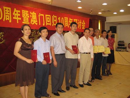 10月14日下午,廣東省江門市僑聯(lián)、江門市華僑歷史學(xué)會(huì)在市僑聯(lián)大廈舉行以“慶祝建國(guó)60周年暨澳門回歸10周年”為主題的研討會(huì)。江門市政府副市長(zhǎng)謝日榮,市外事僑務(wù)局局長(zhǎng)、僑聯(lián)主席張國(guó)富,市社科聯(lián)主席楊偉雄,澳門大學(xué)中國(guó)文化研究中心主任鄭德華教授等專家學(xué)者以及學(xué)會(huì)理事等50多人出席。研討會(huì)由江門市僑聯(lián)專職副主席林春暉主持。