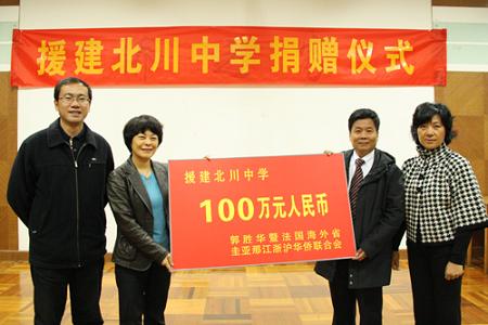 截止目前,浙江省僑胞已為援建北川中學(xué)捐資近千萬。