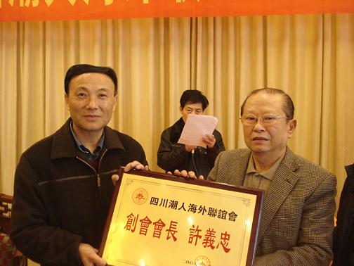 本次大會由潮人會顧問張仲朝主持,創(chuàng)會會長許義忠,名譽會長吳名智、張居平,新任會長陳湖南和其他理事、會員150余人參會。會上,創(chuàng)會會長許義忠作了《十三年工作回顧》的報告,會長陳湖南致《新年辭》,宣讀了第三屆榮譽職務(wù)和領(lǐng)導(dǎo)成員名單。吳振西為創(chuàng)會會長許義忠先生頒發(fā)了榮譽牌。