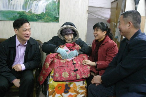 中新網(wǎng)2月1日電 據(jù)廣州市荔灣區(qū)僑聯(lián)消息,1月25日上午,廣東省廣州市荔灣區(qū)委副書記羅思源在該區(qū)僑聯(lián)主席朱小玲、南源街黨工委書記王增光等的陪同下,上門慰問107歲美國(guó)、加拿大僑眷邱麗雯婆婆。這已是羅思源連續(xù)三年春節(jié)前慰問邱婆婆了。