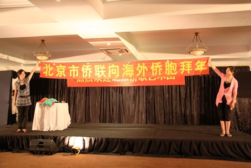 16日晚,北京市僑聯藝術團的藝術家們早早就進入演出現場,進行演出前的準備工作,晚7點鐘,演出正式開始。在2個小時的演出中,藝術家們?yōu)楫數?00多名僑胞奉獻了一場精彩紛呈的視覺盛宴,獨唱、舞蹈、相聲、變臉、魔術等豐富多彩的藝術形式讓在場的觀眾大飽眼福,掌聲連連。