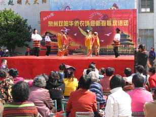 中新網(wǎng)2月23日電 據(jù)泉州市洛江區(qū)僑聯(lián)消息,20日(正月初七)上午,福建省泉州雙陽(yáng)華僑農(nóng)場(chǎng)、雙陽(yáng)街道僑聯(lián)聯(lián)合舉辦雙陽(yáng)華僑農(nóng)場(chǎng)2010年迎新春聯(lián)歡活動(dòng),近千名歸僑、僑眷歡聚一堂載歌載舞,以自編、自導(dǎo)、自演的具有濃厚東南亞風(fēng)情的文藝節(jié)目,歡慶新春佳節(jié)。