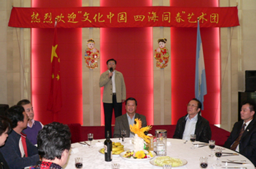 中國駐阿根廷大使曾鋼表示,“我們不是請(qǐng)藝術(shù)家們來做客,而是請(qǐng)你們回家,因?yàn)槟銈冏叱隽酥袊呱狭耸澜,大使館就是你們的家,也是距離我們祖國最遠(yuǎn)的家,我們請(qǐng)你們回家來看看,請(qǐng)你們回家來過年!