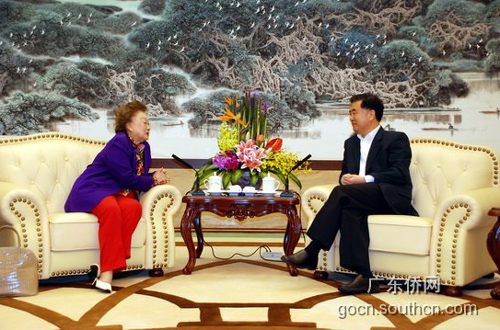 汪洋簡(jiǎn)要介紹了廣東經(jīng)濟(jì)社會(huì)發(fā)展和促進(jìn)經(jīng)濟(jì)發(fā)展方式轉(zhuǎn)變情況,希望以陳香梅女士為杰出代表的在美華僑華人,為中美民間友好往來(lái)繼續(xù)作出新貢獻(xiàn),并對(duì)廣東改革開放和現(xiàn)代化建設(shè)多提寶貴意見和建議。