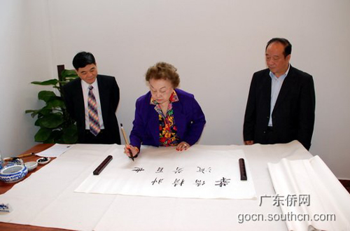18日上午,陳香梅女士一行在拜會(huì)汪洋后,在吳銳成等的陪同下,還饒有興致地參觀了廣東省華僑博物館。當(dāng)她看到博物館專門展出華僑華人捐贈(zèng)的“飛虎隊(duì)”的有關(guān)資料、物品時(shí),感慨萬(wàn)分,即筆揮毫,為博物館題詞“華僑精神,流芳百世”。