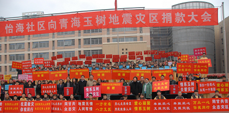 中新網(wǎng)4月23日電 據(jù)北京僑網(wǎng)消息,4月20日上午7時(shí)許,北京市豐臺區(qū)僑資企業(yè)北京怡海怡海置業(yè)集團(tuán)在怡海社區(qū)隆重舉行抗震救災(zāi)捐贈大會。怡海社區(qū)居民、公司員工、師生共計(jì)5000多人參加此次捐贈大會,共同為青海玉樹地震災(zāi)區(qū)奉獻(xiàn)愛心。中國僑聯(lián)辦公廳副主任、中國華僑經(jīng)濟(jì)文化基金會副理事長劉奇先生,怡海集團(tuán)董事長王琳達(dá)女士等參加了本次捐贈大會。
