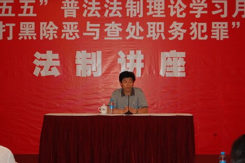 中新網(wǎng)6月24日 據(jù)重慶市外僑辦消息,6月18日上午,重慶市外僑辦舉行了“打黑除惡與查處職務(wù)犯罪”專題講座。此次講座是根據(jù)重慶市委宣傳部、市委法制建設(shè)領(lǐng)導(dǎo)小組辦公室、市司法局有關(guān)“五五”普法工作的要求和《市外僑辦2010年法制建設(shè)工作安排計(jì)劃》,落實(shí)外僑辦法制理論學(xué)習(xí)月具體措施的專項(xiàng)活動(dòng)之一。