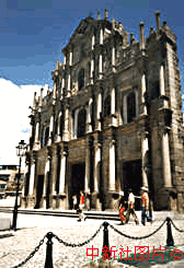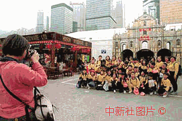——游客們喜歡在“大三巴”前留影。