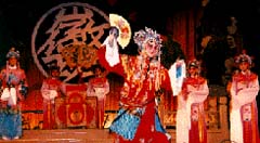京劇的前身--徽劇 徽劇,淵源于明代的"徽池雅調(diào)"。明朝嘉靖年間,江西弋陽腔流傳到安徽青陽,貴池一帶,與當(dāng)?shù)孛癖娤猜剺芬姷拿耖g曲調(diào)相結(jié)合,創(chuàng)造了新腔,形成了具有當(dāng)?shù)氐胤教厣那嚓柷唬磺嚓柷挥质艿矫耖g山歌小調(diào)和昆曲的影響,長期發(fā)展而形成今天的徽劇。 清朝乾隆年間,徽劇名藝人高朗亭,郝天壽等,把徽劇帶到揚(yáng)州演出。當(dāng)時揚(yáng)州是全國文化中心之一,是"花部"的集中地,但很快即被藝術(shù)精湛的徽劇壓倒。乾隆五十五年,高朗亭又帶到了北京,受到了北京觀眾的歡迎。接著,又引起"四喜","春臺","和春"等徽班進(jìn)京。 徽劇進(jìn)京不久,漢劇也進(jìn)京,徽劇又從漢劇中吸收了西皮,進(jìn)一步豐富,發(fā)展了自己的聲腔。從此,徽劇不僅闖進(jìn)了皇宮,振動了京城,而且廣泛流傳,影響了全國.它在北方扎下根子,逐漸吸收了北方的京腔,其高腔與北方語言結(jié)合起來,發(fā)展成為京劇。它在南方的戲曲影響也十分深遠(yuǎn),江西的贛劇、四川的川劇、廣東的粵劇、廣西的桂劇、云南的滇劇,都受到徽劇不同程度的影響。 對徽劇表演藝術(shù)有著突出貢獻(xiàn)的杰出代表是老藝人程長庚。程長庚名椿,字玉珊,安徽潛山人。他把徽音、京音、楚音兼收并用,脫俗創(chuàng)新,卓然成家,對徽劇來說,他起了承前作用,對京戲來說,他起了起后作用,因此,他成為京劇的開山祖師。 徽劇的表演藝術(shù),豐富而多采。它講究平臺與高臺武功,講究身段、亮相的雕塑美,講究人物形象的塑造和畫面氣派等。平臺與高臺武功在徽劇里最為突出,平臺如"獨(dú)腳單踢"、"叉腿單踢"、"刀門"、"飛叉"等都異常驚險,至于高臺武工,更為險要,一般演員要翻三張桌子,有的要翻七張桌子。身段、亮相,在徽戲里很有雕塑藝術(shù)感。徽劇注重集體表演,必要時眾歌齊舞,顯得氣勢壯偉,場面熱烈;談〉膭∧亢芏啵瑩(jù)記載有一千四百零四個,因年代較久,多為手抄本,不少的本子以失傳。解放后,經(jīng)過挖掘整理,富有徽劇特色的代表劇目有:《義虎報(bào)》、《巧姻緣》、《齊王點(diǎn)馬》、《水淹七軍》等。